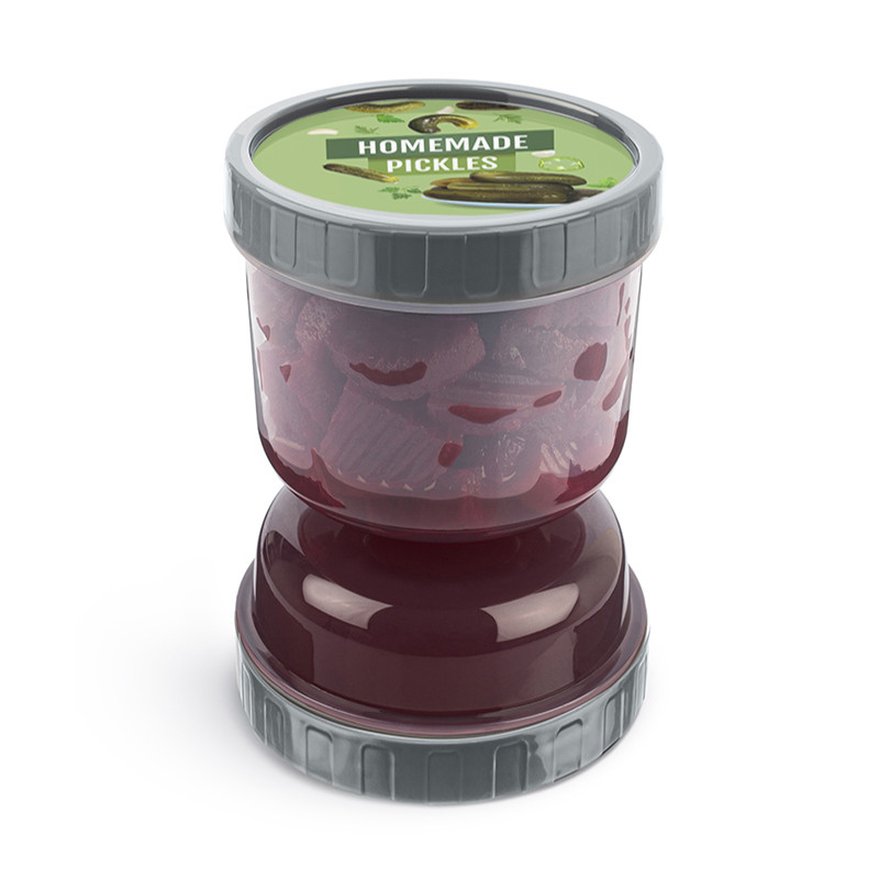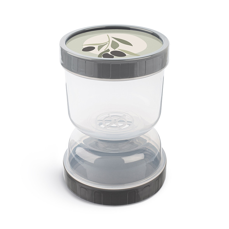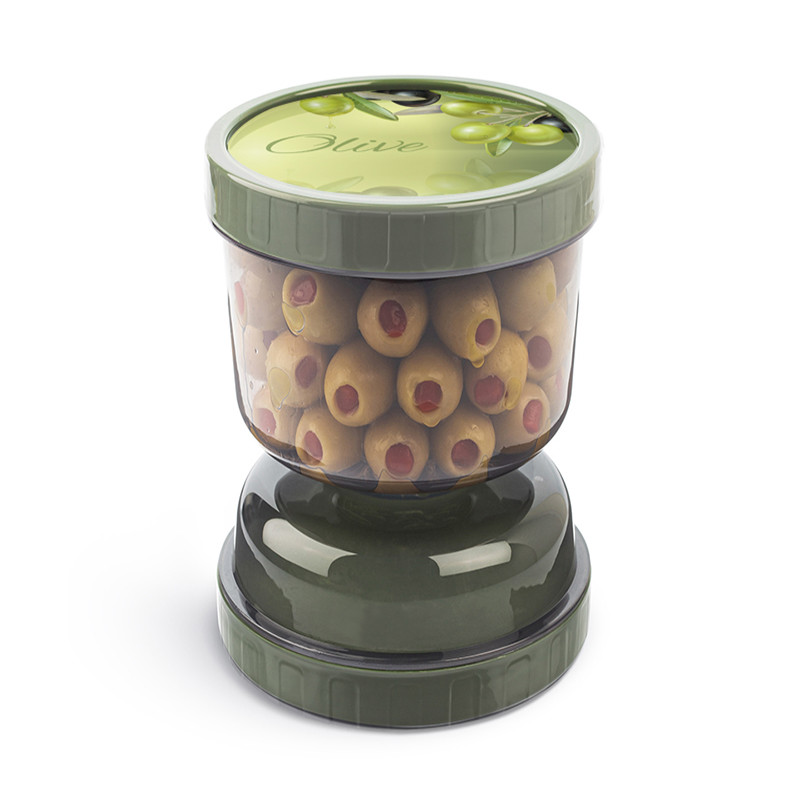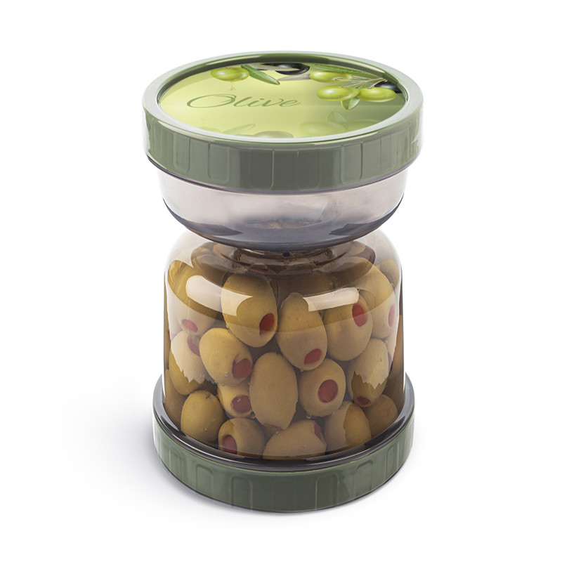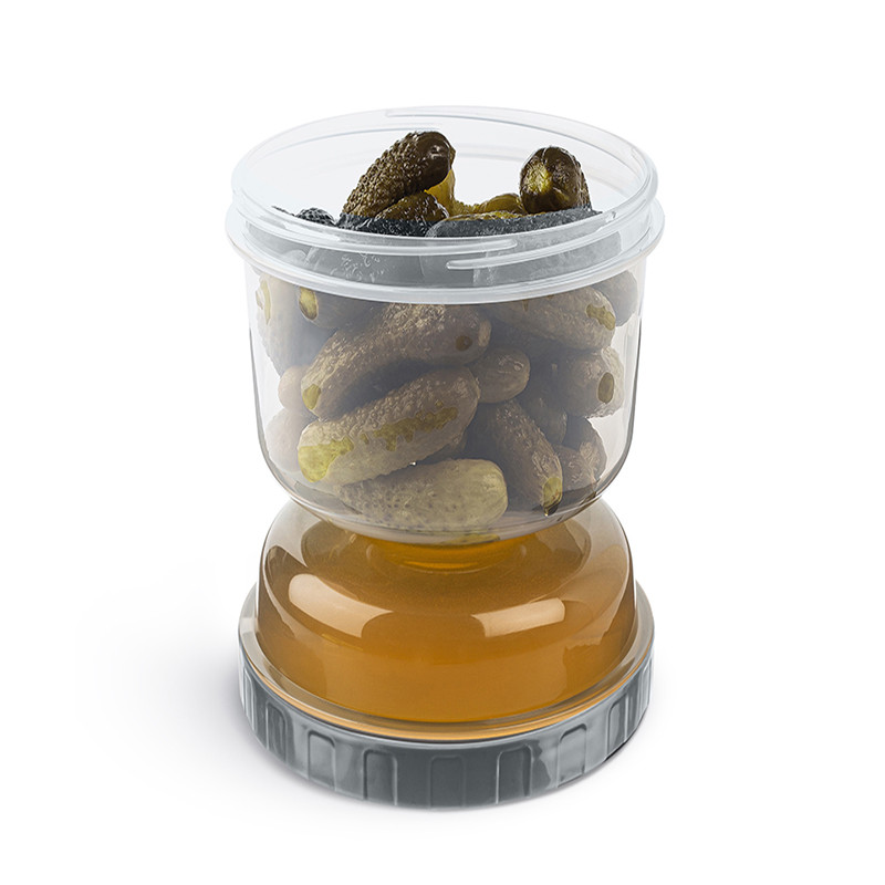 ظرف نگهدارنده خیار شور و زیتون هوبی لایف ساخت کشور ترکیه یک ظرف کاربردی برای نگهداری زیتون و خیار شور میباشد. به دلیل محکم بودن درب این ظرف نگهدارنده به هیچ عنوان آب مواد غذایی به بیرون نشت نمیکند. این ظرف مطابق تصویر دو قسمتی و به صورت ساعت شنی می باشد که طبق تصویر در موقع استفاده ظرف را برگردانده و آب خیار شور یا زیتون به قسمت دیگر ظرف منتقل شده و مواد براحتی جهت استفاده در دسترس قرار می گیرد. این محصول فاقد مواد مضر BPA می باشد. قطر این ظرف 11 سانتی متر و ارتفاع آن 16 سانتی متر می باشد.