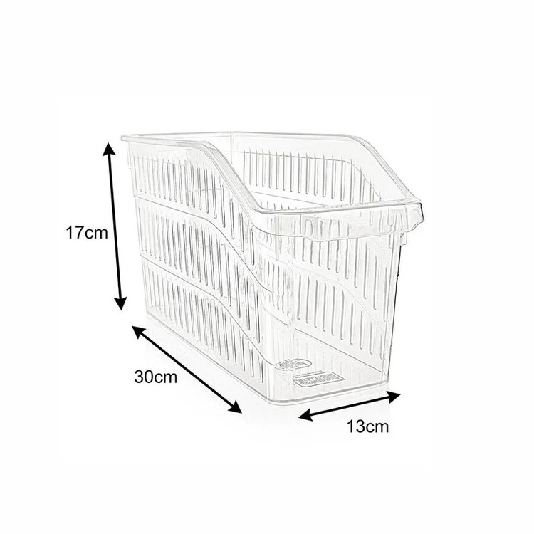 شرایط زندگی مدرن ایجاب می کند تا برای هر کالا و وسیله ای جایگاه مشخصی داشته باشیم و در این میان نظم دهنده ها به همین دلیل اهمیت ویژه ای پیدا می کنند. فضای محدود کمد و کشوها و حتی فضای روی میز کار و کابینت یا درون یخچال می تواند دلیل خوبی برای استفاده از سبد های نظم دهنده هوبی لایف باشد. این سبد های پلاستیکی از مواد بازیافت پذیر ساخته شده اند و در فرایند ساخت آنها از مواد مضر برای سلامتی و غیر قابل استفاده در کنار مواد غذایی مانند BPA استفاده نشده است لذا می توانید برای نظم دادن به فضای یخچال و فریزر نیز از آنها استفاده کنید. محصول فوق طولی معادل 30 و عرضی معادل 13 سانتی متر داشته و ارتفاع آن نیز 17 سانتی متر می باشد. این محصول به صورت دو تایی به فروش می رسد.