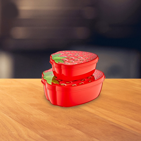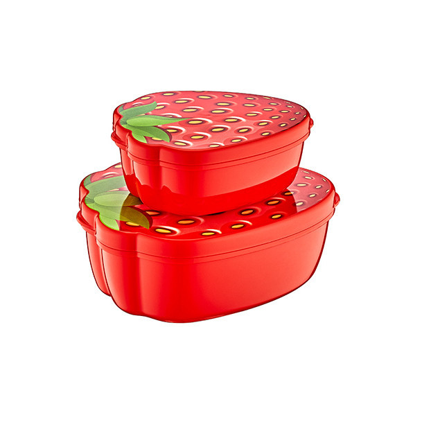محصول کشور ترکیه- بسته 2 عددی شامل : 1 ظرف نگهدارنده با حجم 550 میلی لیتر و ابعاد 15x12x6 سانتی متر و 1 ظرف نگهدارنده با حجم 250 میلی لیتر و ابعاد 11x9x4.5 سانتی متر- فاقد مواد مضر BPA- طرح توت فرنگی
