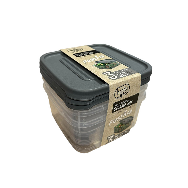 ظرف نگهدارنده هوبی لایف مدل Festiva کد 021374 در بسته بندی 3 عددی عرضه شده است. این محصول دارای 3 عدد ظرف نگهدارنده درب دار به شکل مربع و با گنجایش 1 لیتر می باشد. این محصولات از پلاستیک با کیفیت بالا و فاقد مواد مضر ساخته شده است.