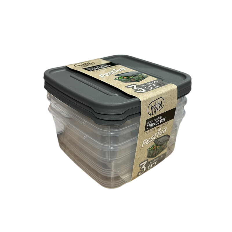 ظرف نگهدارنده هوبی لایف مدل Festiva کد 021375 در بسته بندی 3 عددی عرضه شده است. این محصول دارای 3 عدد ظرف نگهدارنده درب دار به شکل مربع و با گنجایش 1.6 لیتر می باشد. این محصولات از پلاستیک با کیفیت بالا و فاقد مواد مضر ساخته شده است.